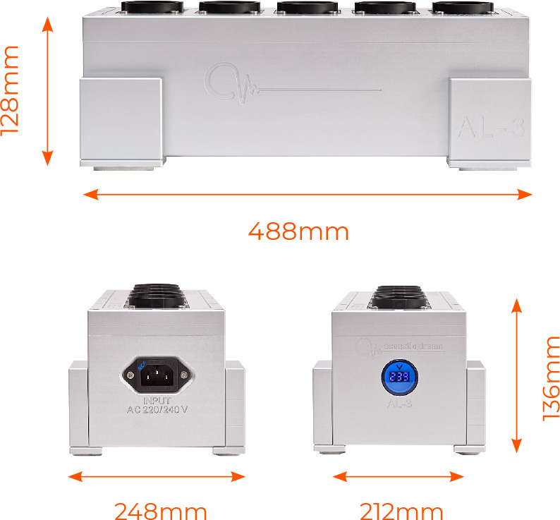 Filtracja energii elektrycznej na bazie filtra AD. PĹytka PCB pokryta wieloma warstwami izolacji. ĹcieĹźki miedziane, pokryte 24 karatowym zĹotem. Mostki kablowe wykonane z czystej miedzi 99,997%. Rdzenie cewek wykonane w nanotechnologi. Filtracja czÄstotliwoĹci od 100 Hz do 6 GHz. Voltomierz AC 230V.